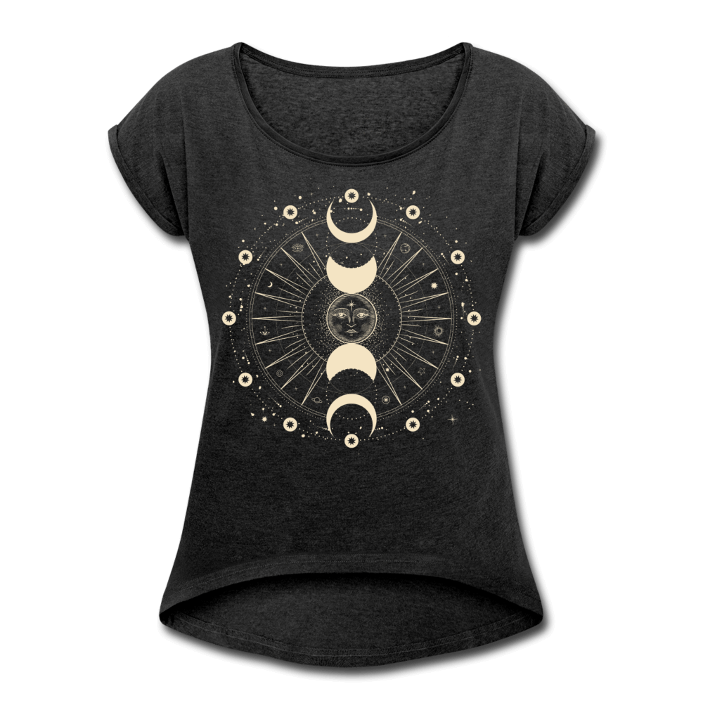 Embrace cosmic energy with our Moon Goddess Roll Cuff Tee, featuring a celestial moon phase design that honors divine feminine power. Perfect for spiritual souls and modern mystics, this boho moon graphic tee is soft, breathable, and effortlessly stylish. The astrology-inspired artwork blends sacred geometry with lunar symbolism, making it a must-have for fans of witchy fashion, goddess vibes, and moon cycle awareness. With its relaxed fit and rolled cuffs, this lunar goddess shirt is ideal for yoga, meditation, or everyday magic. Express your inner moonchild with this enchanting, symbolic piece.