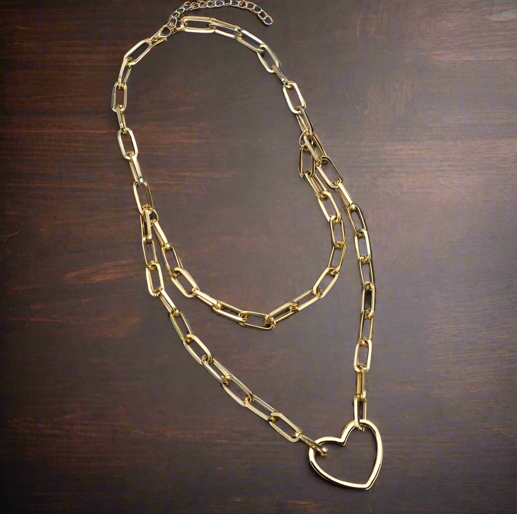 Turn heads with the Chained Heart Statement Necklace, a bold fusion of chunky chain links and a striking heart pendant. Perfect for layering or wearing solo, this necklace combines the edgy appeal of a chain choker with the romantic charm of a heart necklace. Made for modern fashion lovers, it’s the ultimate accessory for street style, casual wear, or festival outfits. Available in both gold and silver tones, it offers versatility to suit any look. Crafted with durable metal alloy, this piece adds instant flair to any ensemble, making it a must-have for those who crave statement jewelry with a touch of elegance.