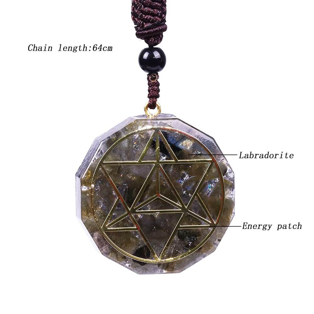 Awaken your inner magic with this powerful Labradorite Merkaba Pendant Necklace, designed to elevate spiritual awareness, boost energy protection, and enhance intuitive abilities. Labradorite is revered for its iridescent sheen and metaphysical strength, helping to balance the third eye chakra, amplify psychic insight, and shield against negative forces. The sacred merkaba star geometry promotes energetic alignment, deep meditation, and access to higher consciousness. This pendant is a striking blend of crystal healing and ancient symbolism, ideal for those on a path of transformation and inner truth.